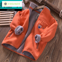 男童抓绒瑶力绒外套加绒加厚摇粒绒外套秋冬款儿童装中大童绒衣棒球服拉链颗粒绒 桔色 衣标110,建议身高105