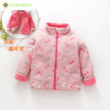 女童春秋新款摇粒绒外套加绒儿童春装抓绒衣宝宝上衣洋气开衫 粉红色 两面穿 100码(建议身高85cm左右)