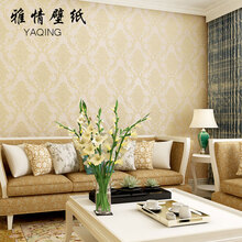 雅情壁纸奢华欧式精压无纺布自粘墙纸客厅卧室电视背景墙沙发书房壁纸 JA203米黄色-3m长*53cm宽