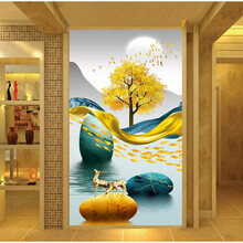 北爱过道壁画3d立体走廊过道玄关壁画现代简约壁纸竖版8d装饰画背景墙墙纸麋鹿定制一整张 8D晶雕立体壁画/平米性价比高