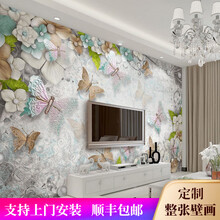 六纹鱼 8D壁画浮雕立体墙纸现代简约欧式电视背景墙壁布客厅欧式花朵壁纸 (无缝) 日本透气宣绒布/每平方