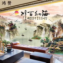 8D凹凸立体大型定制电视背景墙海纳百川山水渔船壁画自粘无缝整张墙布欧式简约壁布卧室背景墙壁纸简欧墙纸 3D平面丝娟布28元/平方米 高宽定制