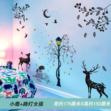 曦凰墙贴画贴纸卧室网红背景墙房间装饰品ins海报墙纸自粘 小鹿+路灯女孩 尺寸请查看详情图片