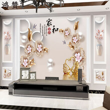 鸿赞 五宫格壁画客厅电视背景墙8D墙布影视墙孔雀玉兰花几何16D壁布3D丝绢布画18D浮雕墙壁纸 3D平面丝娟布 高宽定制