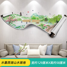 山水画墙贴 3D 3d立体中国风山水画客厅电视背景墙装饰墙贴纸贴画墙墙纸自粘 水墨西湖山水画卷 特大