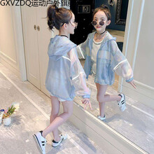 安德黑玛[特价捡漏]GXVZDQ女童薄款夏季新款户外防晒服女孩拼接连帽儿童装衫外套夏 蓝色 110码建议身高100cm