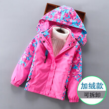 儿童冲锋衣童装女童春秋外套2020儿童户外冲锋衣冬加厚加绒可拆卸三合 桃心三合一粉色 110码建议身高100cm左右