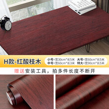桌贴桌面贴纸白色木纹桌纸墙纸自粘防水桌贴书桌子衣柜子家具翻新贴纸 H款-红酸枝木(含安装工具) 小