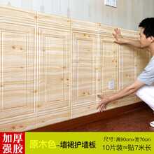 墙裙护墙板 欧式3D立体墙贴客厅墙围软包装饰防水墙裙贴纸自粘墙纸防撞护墙板 原木色墙裙加厚 强胶90*70cm=10装 大