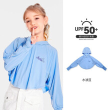 骆驼外套女 2021春夏新款冰感轻薄透气斗篷连帽皮肤衣 A1S645160,水波蓝,儿童 S