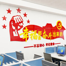 舒厅 党建墙贴3d立体企业文化背景墙亚克力装饰贴纸自粘党员活动室墙面布置办公室励志奋斗文字标语墙纸 幸福都是奋斗出来的 小号:宽200*高86厘米