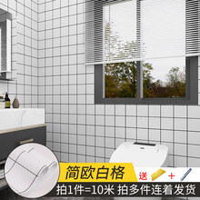窗纸 透光不透明 浴室卫生间防水贴纸墙壁墙面遮丑墙纸自粘防潮防霉厕所仿瓷砖墙贴 Q-简欧白格60cm*10米【加厚款】 大
