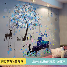 电视背景墙装饰贴画 房间布置墙面墙壁3D立体温馨墙纸自粘卧室装饰墙贴纸 梦幻钢琴+雪花林 大