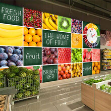 水果店墙纸 水果墙纸果蔬菜大型超市便利店用品海报图案背景墙装饰壁画 无缝芬兰油画布 仅墙纸
