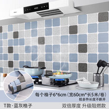 厨房防火防油 防高温帖墙纸加厚 墙壁防水防潮贴油贴纸橱柜灶台用阻燃防火自粘防水防潮瓷砖翻新 T款·蓝灰格子