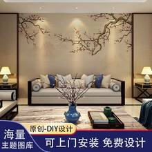 月上映画 新中式客厅8D16D立体凹凸电视背景墙壁画定制沙发影视墙壁纸墙布 无缝油画布1平方