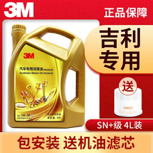 3M金装全合成机油 SN+ 5W30/5W40适用吉利汽车专用吉利帝豪远景X6博越博瑞汽车保养润滑油 全合成机油5w-30 SN+级 4L 吉利缤瑞专用机油美国3M公司出品,3M全合成机油,SN+级润滑,抗磨损,更静音!到手价199!下单送机滤,包工时!限时加赠德国进口发动机清洗剂!
