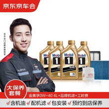 京车会美孚机油汽车大保养套餐+品牌机滤空气滤空调滤+工时 金美孚1号 全合成 0W-40 SN 4L【门店现货】