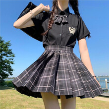 Exemaba沙华jk制服裙正版夏季女童百褶裙儿童连衣裙全套装小学生大童女装 烟灰 130