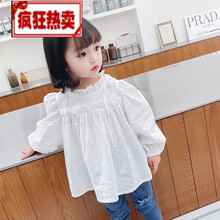 界方【新品】1-14岁6岁洋气小孩夏天穿的女童春装白色衬衫宝宝娃娃衫2021年新款洋气春秋儿童纯棉 白色 110cm