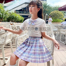 SSEURATjk制服儿童 女童百褶裙套装大童小学生夏季泡泡袖jk制服裙儿童学院风裙子夏装 独角兽【娃娃领衬衣+裙子+领结】 160 85斤以内