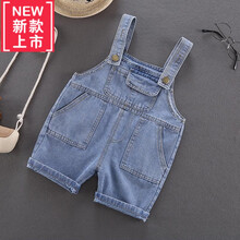 冠空℘‼️〶新品1-6岁15岁小孩穿的鞋子男童牛仔背带裤2021夏季新款韩版儿童背带短裤中小童宝宝休 前袋盖背带五分裤 80
