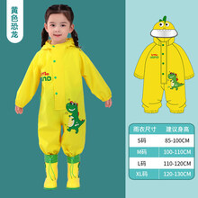 雨裤连体 儿童连体雨衣雨裤男童女宝宝雨披幼儿园小学生全身防暴雨套装恐龙 黄色至雨衣(不含雨鞋) S
