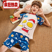 界方【新品】1-14岁6岁洋气小孩夏天穿的儿童睡衣男童春夏季纯棉短袖短裤卡通小男孩中大童冬款家居服 (棉)短袖5577奥特曼 12码(113-123cm/45斤)
