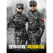 迷彩服套装男黑色春秋款透气耐磨作训服军迷战术训练服 黑鹰迷彩(上衣+裤子) 童装110码