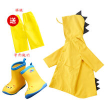 儿童雨衣超薄 网红雨裤套装夏季防水款小孩恐龙雨衣长款全身防暴雨 恐龙黄色雨衣+24码雨鞋+裤腿 S