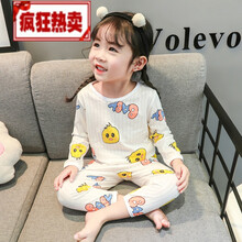 界方界方【新品】3-14岁6岁洋气小孩夏天穿的儿童睡衣夏季纯棉薄款女宝宝小童空调服女孩小女童家居服 透气棉-字母小鸭白色【长袖】 100码(参考身...