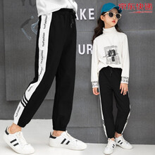 巴布豆女童运动长裤春秋新款冬季休闲裤中大童女孩洋气韩版加绒百搭外穿 黑色 140