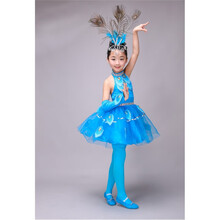 XING GE JUN六一儿童演出服装女童幼儿少儿舞蹈裙傣族舞孔雀舞民族表演服新款 蓝色短款+头饰+裤袜+鞋子 请备注鞋子尺码 90cm