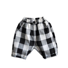 男童夏装短裤2021小童宽松格子裤薄款外穿七分裤1-6岁男孩休闲裤小孩子穿的宝宝拖鞋夏 大格子 90 两用裆设计
