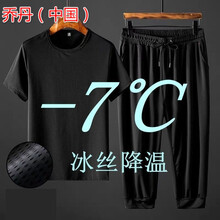 乔丹(中国)专卖夏季加肥加大码宽松休闲运动套装男士冰丝束脚九分裤短袖潮流 S003七分束脚+T06黑色(套装)乔·丹(中国) 6XL建议185-200斤
