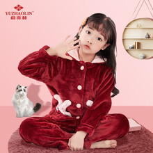 俞兆林(YUZHAOLIN)春款儿童睡衣秋冬新款法兰绒家居服长袖长裤卡通女童宝宝居家服套装 T103兔耳朵款(酒红色) 120(建议身高110-120cm)