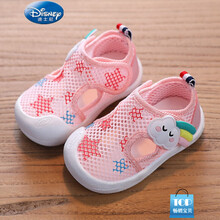 /迪士尼线下商场同款婴儿学步鞋夏款软底网面透气网眼鞋单网夏一岁半女男宝宝鞋子夏季小孩穿的 粉红色 内长13cm