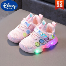 迪士尼(Disney)商场同款女童运动鞋亮灯秋季新款网面透气宝宝鞋小女孩软底学步鞋 粉色208 29码鞋内长17.2厘米