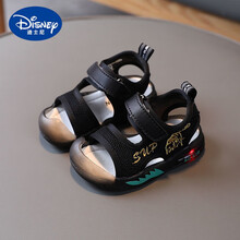 /迪士尼线下商场同款2021夏季0-1-3岁宝宝包头凉鞋亮灯幼儿防踢学步鞋婴儿防滑凉鞋 黑色【牛】 16码内长12cm