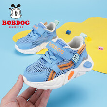 巴布豆童鞋男女宝宝学步鞋夏款2021新款1-3-5岁童鞋机能小童透气网鞋儿童鞋 蔚蓝/焰火橙 23