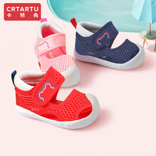 卡特兔经典学步鞋婴儿鞋1一2岁宝宝机能鞋软底不掉跟男女童凉鞋夏季网面单鞋透气 红色凉鞋 内长12.5cm(适合脚长12cm)