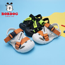 巴布豆童鞋婴儿学步鞋男宝宝女夏1-3岁包头凉鞋幼儿沙滩鞋 黑/闪绿 21码内长14.0cm