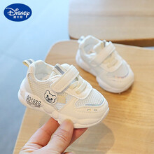 Disney/迪士尼同款0-2岁男女宝宝软底学步鞋春季新款网鞋透气运动鞋小童单鞋婴幼儿鞋子新品 布贴小熊夏季透网米白色 16码(11.5cm)
