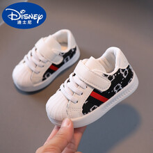 迪士尼 轻奢新品春秋女宝宝学步鞋0一1-2岁婴儿软底网面透气鞋子男宝秋季运动板鞋 A-45黑色 内长12.5cm
