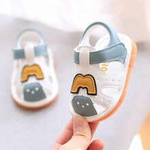 Disney/迪士尼同款叫叫鞋宝宝凉鞋2021新款婴儿学步鞋男女童一周岁防滑软底夏季包头 M蓝色 内长12.5cm 18码