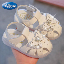 ℘Disney/迪士尼 宝宝凉鞋0-3-6岁夏季包头防踢女童鞋防滑软底亮灯公主鞋学步鞋 白色 内长15.0cm 25码