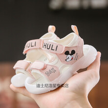ℂ迪士尼同款带亮灯女宝宝凉鞋包头学步鞋男婴儿鞋软底小童防撞踢1-3岁夏季一2旗舰官方专卖 粉红色(没有灯) 内长12cm /14码