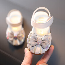 【清凉出击】迪士尼小宝贝舒服走路女宝宝凉鞋2021新款软底防滑夏季学步鞋0一1周岁婴儿鞋女童公主鞋 米白色 A-A-9婴儿凉鞋 24码【内长约14.7厘米】