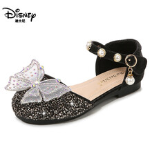 迪士尼品牌旗舰 女童凉鞋2021新款蝴蝶水钻爱莎公主鞋夏包头软底水晶鞋学生礼服鞋 黑色(水钻蝴蝶) 26