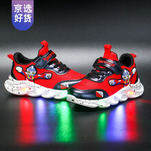 2-13岁夏天穿的。赛罗超人的衣服奥特曼鞋子儿童男网红鞋夏透气男罗网眼童 红色双网 带灯-MU 28码【内长17.4厘米】-PL